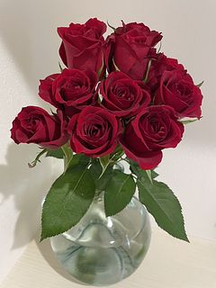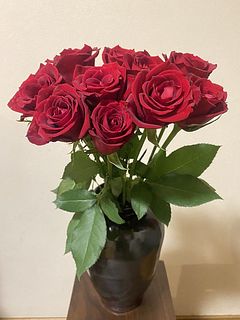 1本は初めから折れていて、届いた翌日には2本が萎びてしまった。もちろん届いてすぐに水揚げはしたが、10本のうち3本がダメなのはちょっと納得がいかない。薔薇の色は思っていたとおりの真紅でとてもキレイなだけに残念だった。