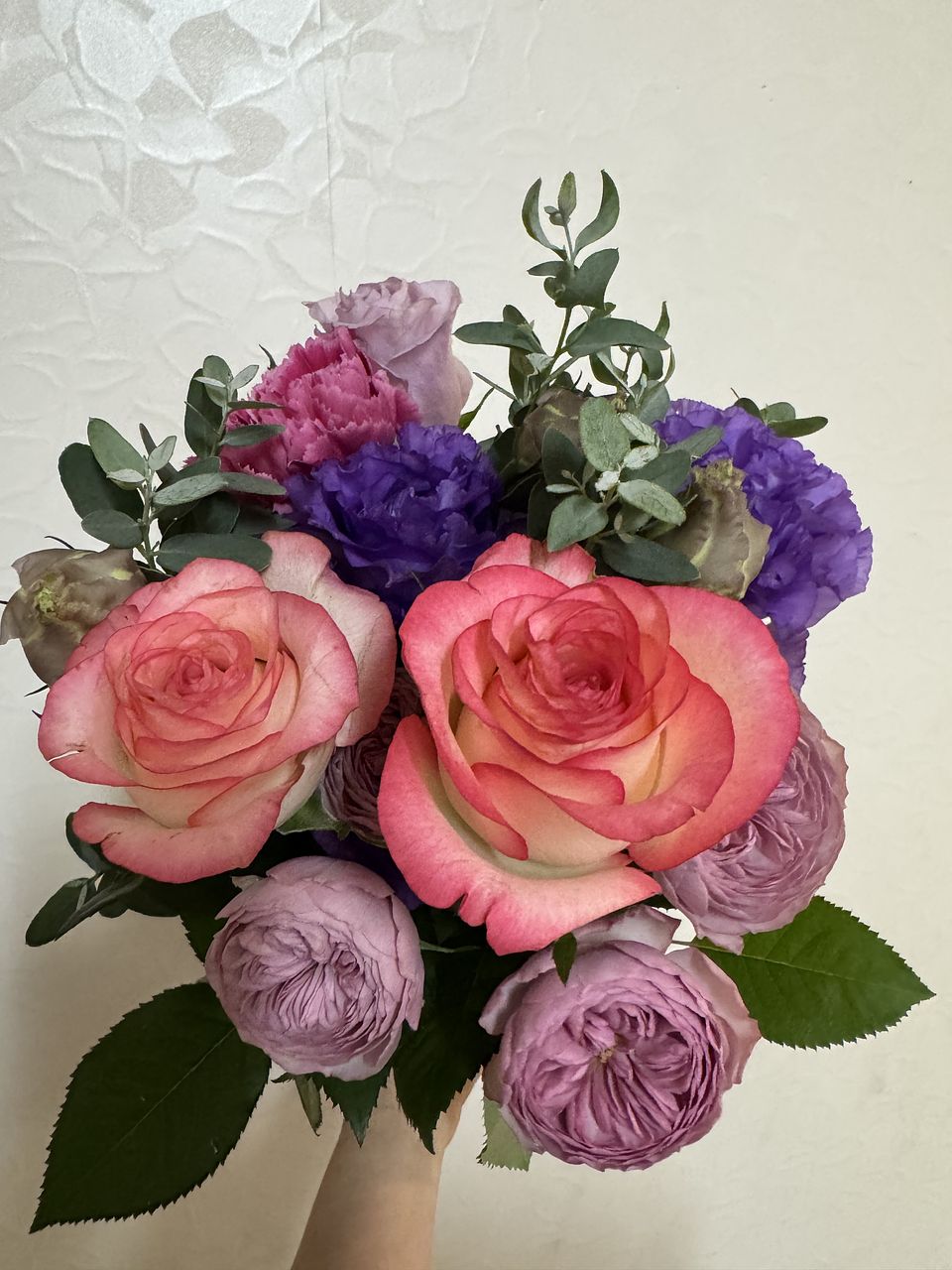 ボリューム、色等思っていた通りのブーケでした。ユーカリの香りで癒されます。 暑い夏も終わり少しでも長持ちする様に お手入れをしたいと思います。