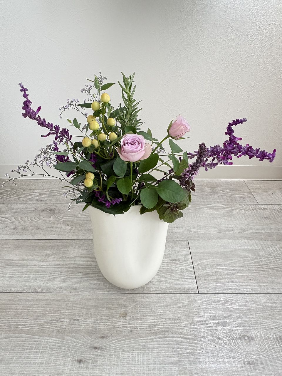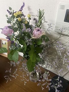 自宅用にブーケをネットで買うのが初めてで到着を楽しみにしていました。 期待以上のお花のボリュームと鮮度に感動しました。 セージが元々大好きなのですが、とてもいい香りがします。クール便で届けていただいたので、お花も元気です。 決してわが家は裕福なわけではありませんが、少し節約をしてでも定期的にお花を頼みたいなと思っています。それだけ幸せな気持ちにさせてもらいました。ありがとうございました!