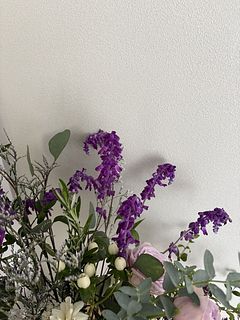 新鮮でボリュームたっぷりの花束💐 香りもとっても良くて眠気を誘う〜🥰 癒される反面、紫色のお花が鮮やかで気分も上がります♪