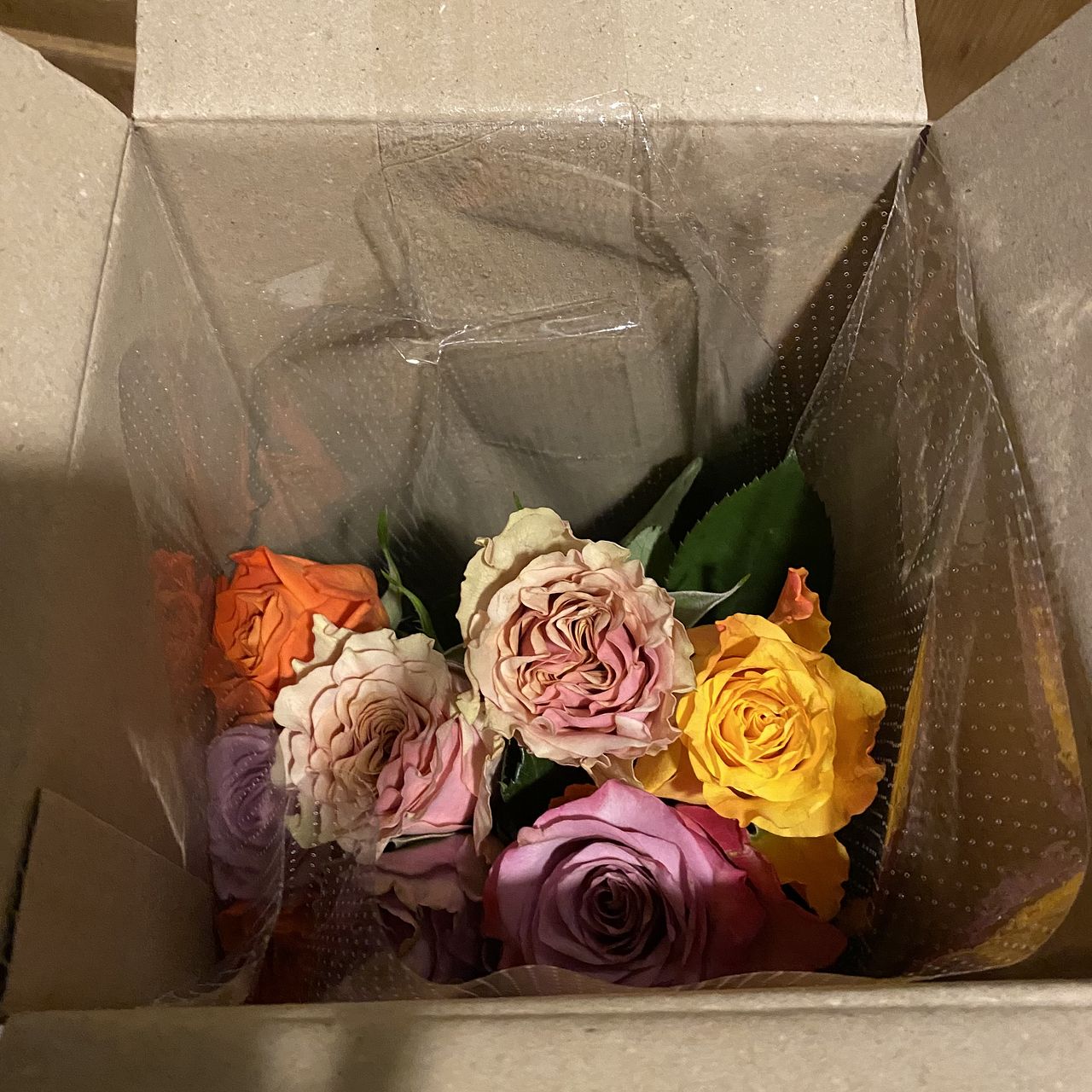 配送中にお花が枯れてしまったり折れてしまうなどのトラブルが起こってしまう場合がございます。もしそういった商品が届いた場合は返金またはクーポンにて補償いたしますので、お手数ですが「お問合せ」までご連絡ください(その際、商品のお写真をご用意いただけると手続きがスムーズになります)。