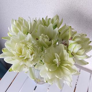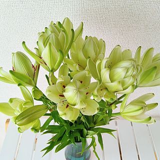 グリーンがとても涼しげです! 日が経つに連れ色が刺してきて印象が変わり 楽しめました!とても長持ちしてます。
