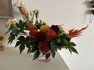 通販のお花は、他社でも購入したことがあり、こちらは送料無料なのに同等のしっかりした梱包配送をしてくださりかなりお得感があります。強いて言えばそこが良さでもあるのですが、写真のイメージ通りではないこと。ロスを減らす目的としては理にかなっていますが、オータムカラー…?という感じは否めません。(くすみ系カラフル系と別れていたら尚良)ですが、イメージ通り買いたいなら実際に花屋さんに行くべきであって、値段からしたら相応以上だと思いました。お花もイキイキしています。また利用させていただきたいです。