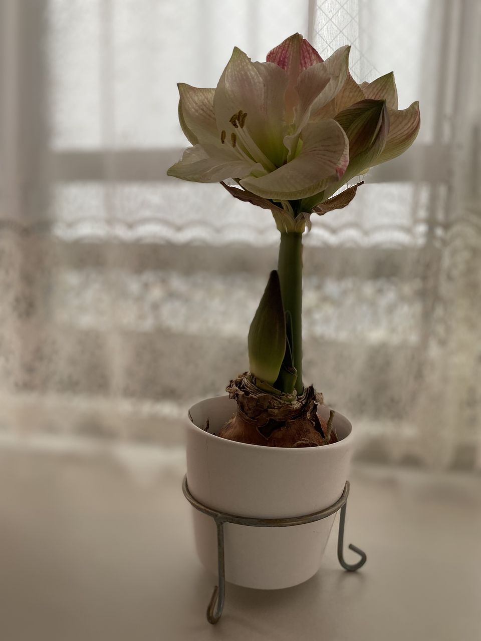 ホワイトに淡いピンクがほんのりと入る、キュートなアマリリス😍