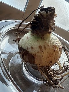 初めて購入しました。 写真通りの大きくてぽってりころんとしていて可愛らしい球根です。 他の方も書いていますがちょっと大きな玉ねぎみたいです。 どんなふうに成長していくのか何色のお花が咲くのか、とても楽しみです。 12月22日に球根が届きまして、お写真は2月12日に撮りました。 とても綺麗です✨☺️