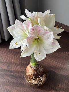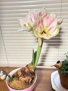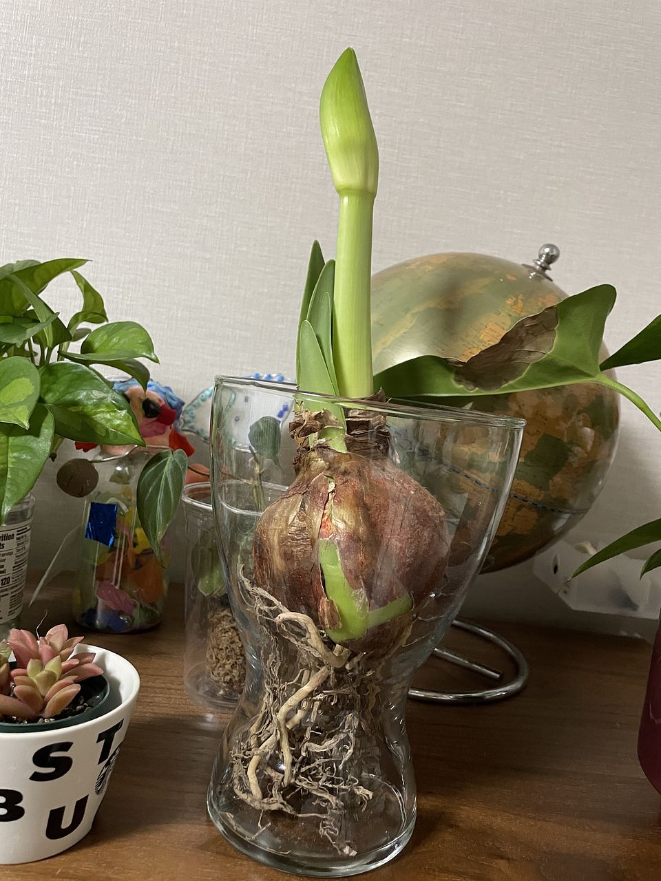 とても立派な球根で土と水がいらないのとでびっくりです。 早速窓辺の暖かい所に置いたらめが出始めました。 さくのを楽しみにしています。