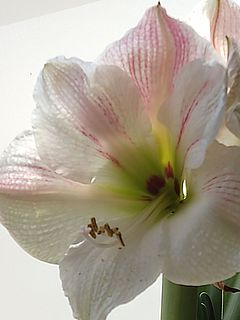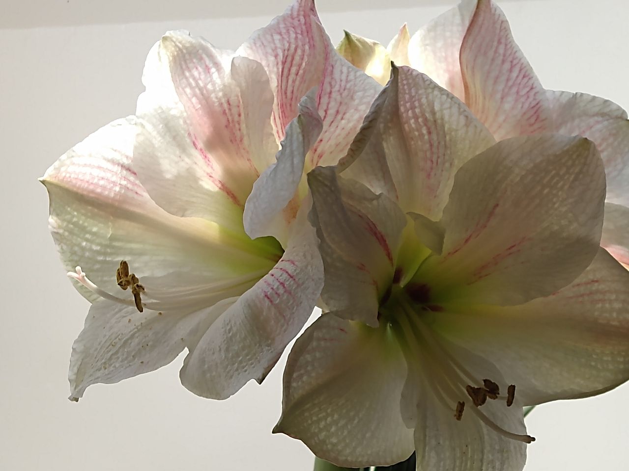 昨年暮れから育てたアマリリス 綺麗に咲きました 今のところ2輪 蕾が4輪 全て咲くのが楽しみです