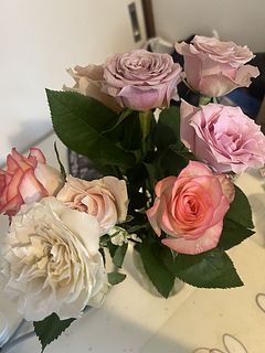 とても素敵なバラ、香りが良いです。 配送に2日かかるので外側の花びらが少し傷ついてしまったかもですが、水揚げするとグンと元気になってきました。少しずつ違うピンクの色合いが楽しめます。