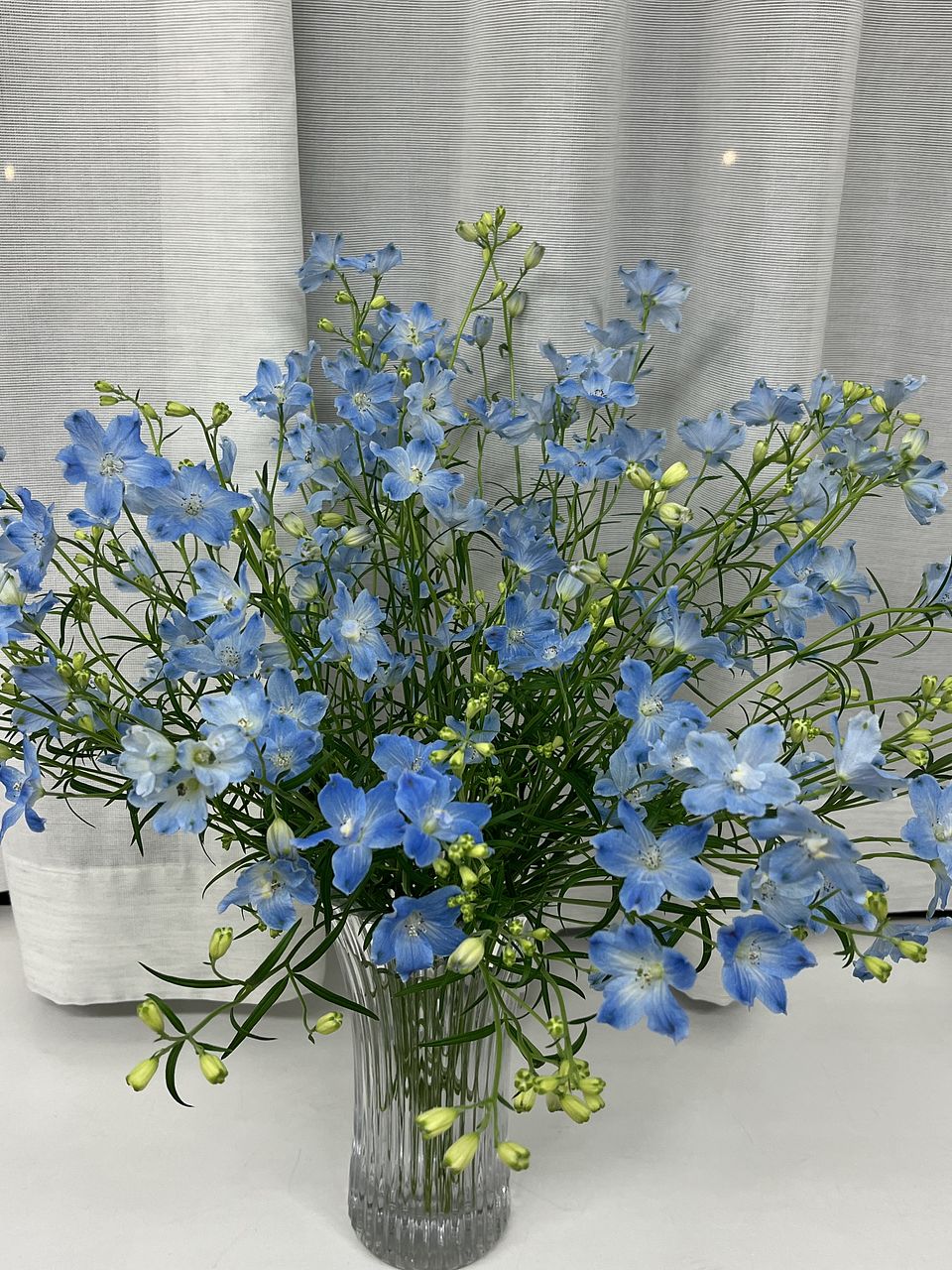 大好きなデルフィニウムをこんなにたくさん活けることができてしあわせです 活き活きとしたお花が届き 水切りしながらわくわくしました ありがとうございます
