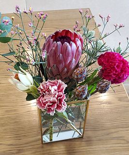 おしゃれな色味の個性的なお花が届きました! 自分では考えつかない組み合わせで部屋の雰囲気がパッと華やかになりました。 ボリュームもあって大満足です。ありがとうございました。