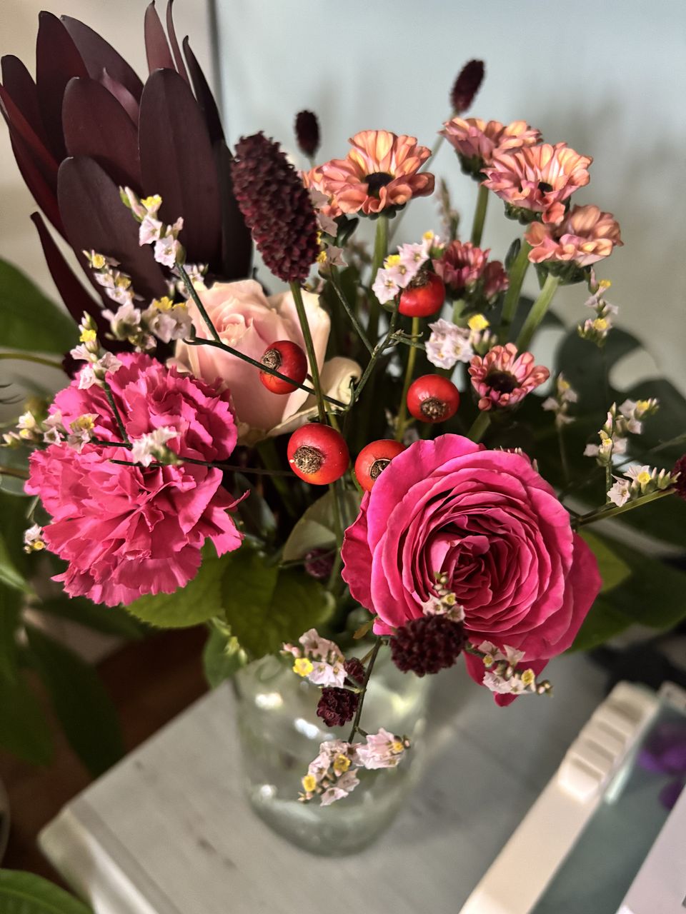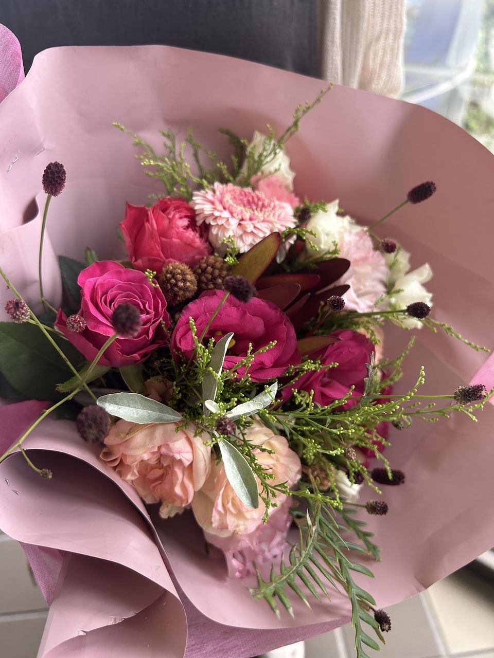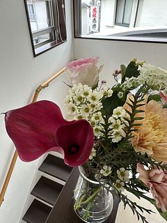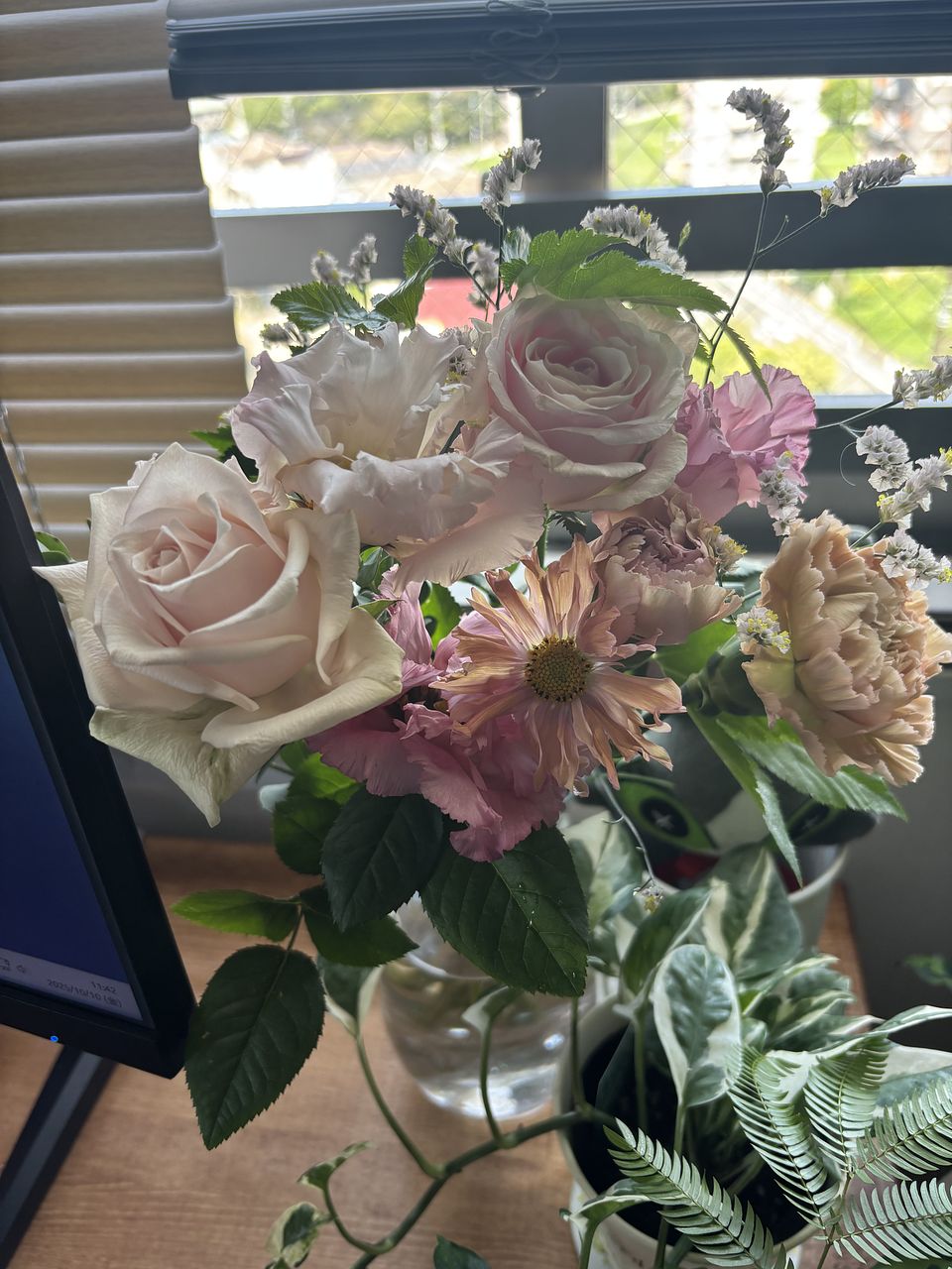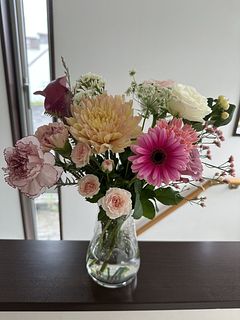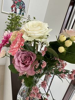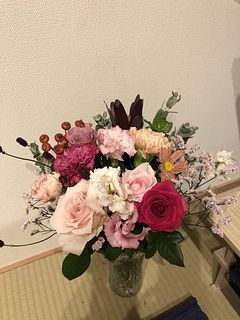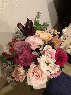 楽しみにしてましたが届いたお花は色合いが暗いものばかりで写真からのイメージとかなり違いました。ミルクティー色は好きですが全体の色のバランスで素敵に見えない。花より木や葉が多くて雑林みたいで花がかすみます。バラも元気がなくて翌日には3本が下を向いてしまいました。とても満足する時もありますが、お任せではいつもがっかりさせられてます。中身が決まった商品をオーダーするのが良いと思いました。母の誕生日用の花でしたが全く喜んでないのでリベンジに明るい色合いの花を再度注文します。せめて新鮮な花が届きますように。