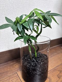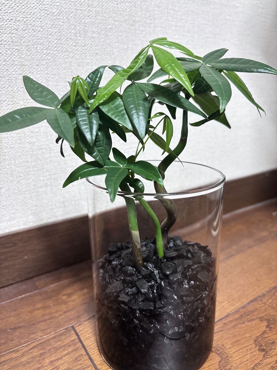 配送業者の扱いが悪かったのか、倒れたか何かで箱まで水が浸み出していた。パキラは折れたりはしてなかったけど、炭が散らばっていて、ちょっと残念😢 枯れずに育ってくれますように。