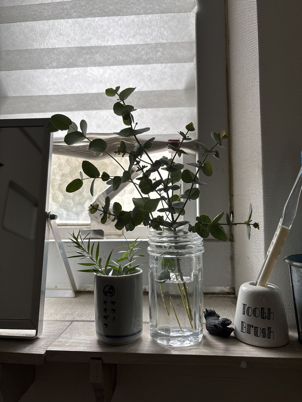 ユーカリの新芽は土からの栄養が足りず、切花になるとどうしても萎れています。とっていただきお楽しみください。