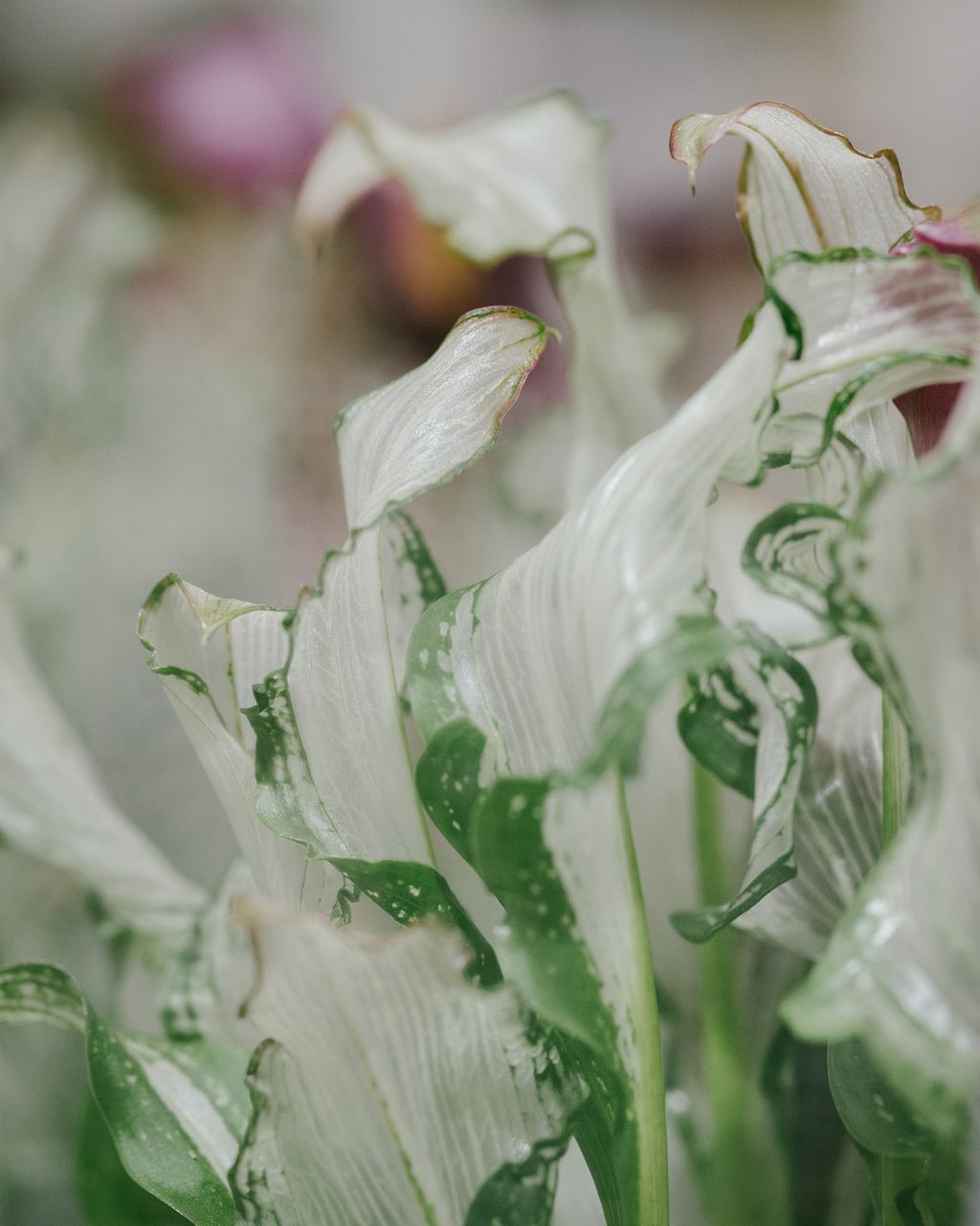 透明感のある斑入りの葉と花のコントラストにうっとり😍希少種カラー「フローズンクイーン」❄️👑