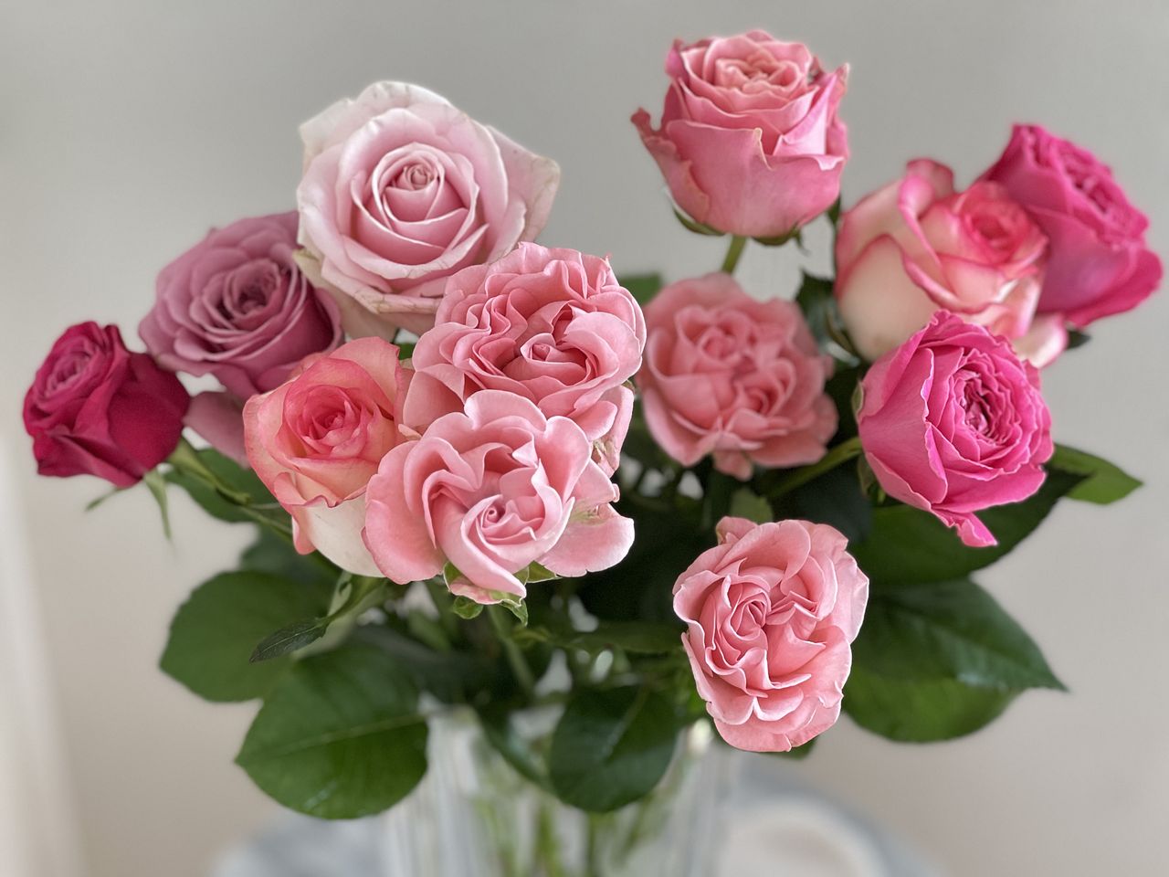ピンク色の様々なバラを贅沢に、8本をセレクト🎀