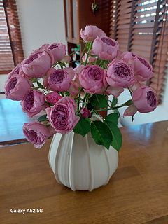 箱を開けたらふわっと良い香りがお部屋に広がりました😍 希少という言葉にとても弱いので希少と聞くと飛びつきます(笑) 4本とありましたが、ラッキーなことに5本入っていて なぜか1本だけ色が濃く お花の数は21個✨ コロンとしたカップ咲きのお花が可愛いです♡ 何とも言えない落ち着いたモーブピンクで中心にいくほど濃くなるグラデーションも素敵でした。 合わせ買いしたpulleaによく合いました♪ 素敵な薔薇をありがとうございました。