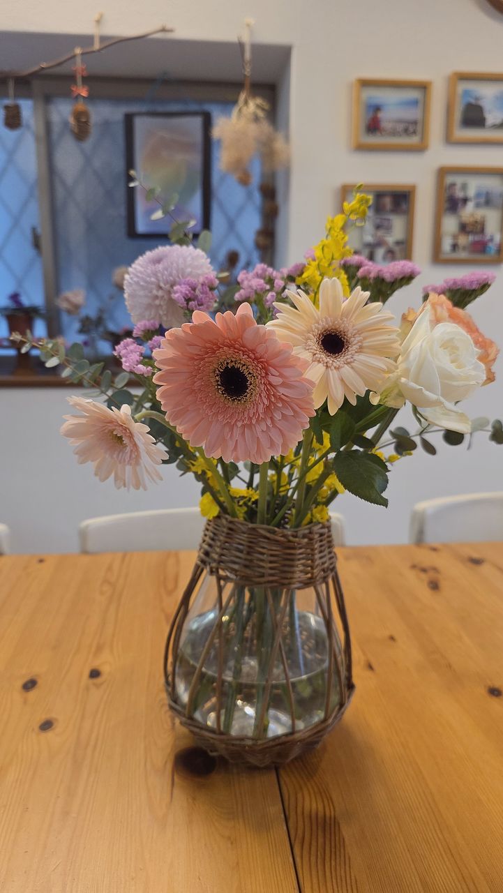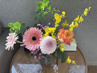 1本ガーベラが折れていて、茎もほぼ痛んでいて残念でした🥲 かわいいお花たちで、思ったよりボリュームもあったのでその点は良かったです。