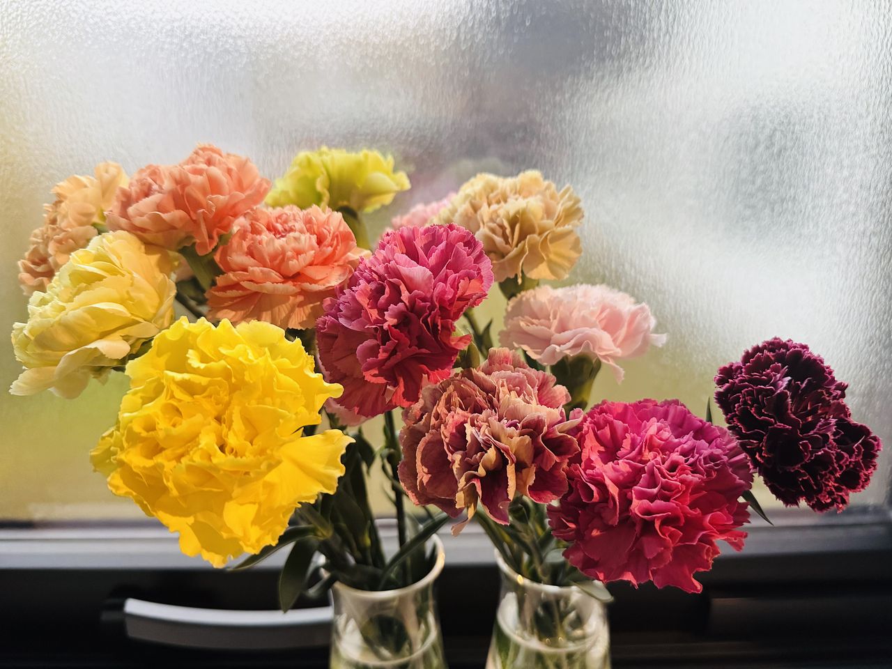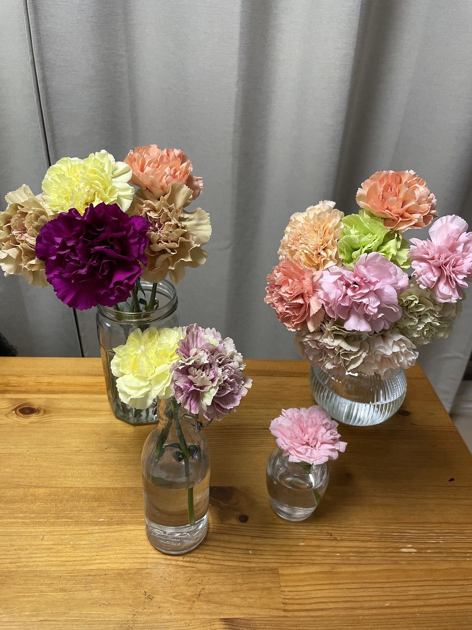 カーネーションにこんなに色んな色があって可愛いので気に入りました💮