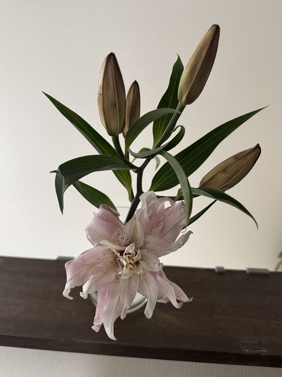 いつもたくさんのお花を紹介していただき、ありがとうございます。 こちらのユリは、前回購入した時にあまりにも素敵だったので、いろいろなお花に挑戦したいと思いつつも再度購入しました。 もう本当に本当に素敵なユリです。 1本に蕾がたくさんついていて、八重咲きになるとピンクから白へのグラデーションが本当に美しくて華やかで、ずっと見ていられます。 部屋中にふんわりと良い香りが漂って、とても癒されています。 大切にお世話をして、できるだけ長く咲き誇っていてほしいと思います。