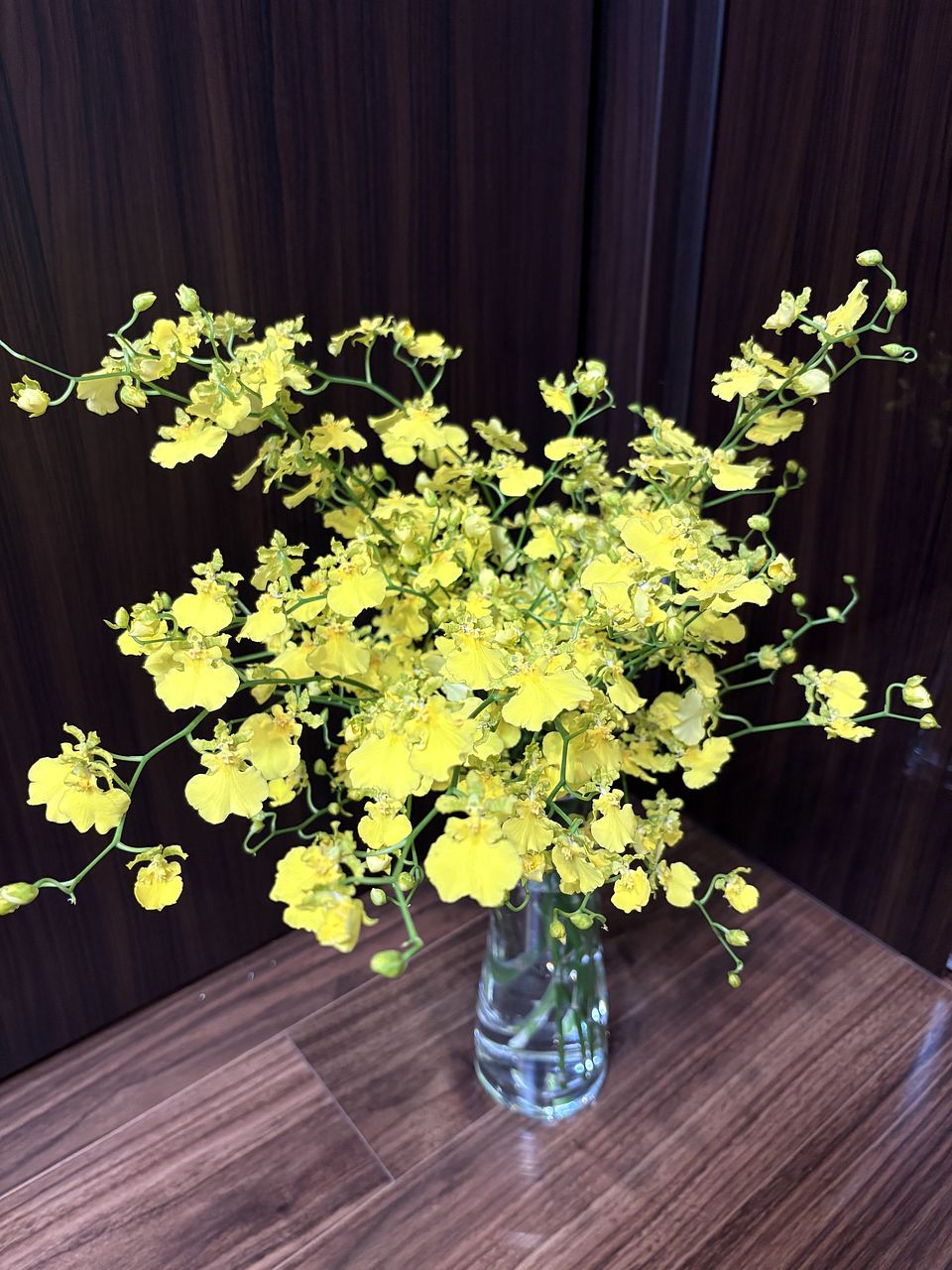 オンシジウムは縁起の良い花とされており、黄色いオンシジウムは金運アップの風水効果があるんだとか。「実り」の方角とされる西の方向に飾るのがおすすめ。花言葉は「可憐」「清楚」「美しい目」。