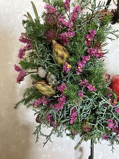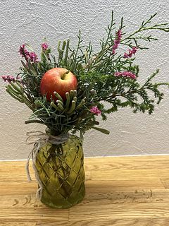 花材がとてもボリュームがありました。 朝届いて直ぐに作成。とても楽しいです☺ 家にあったタグをつけてみました。アレンジも楽しいです。 花材が余ったので家にあった唐辛子と小さなクリスマス飾りを作り花瓶にもさしました。