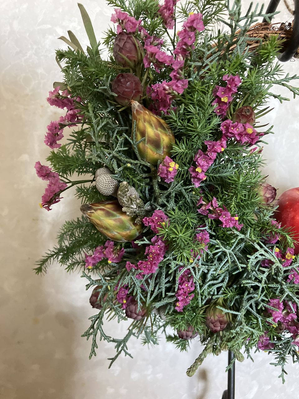 花材がボリューミーだったので、ハーフはやめて、まんまるに仕上げました☺️ アップル🍎文句なし、かわいい♥️