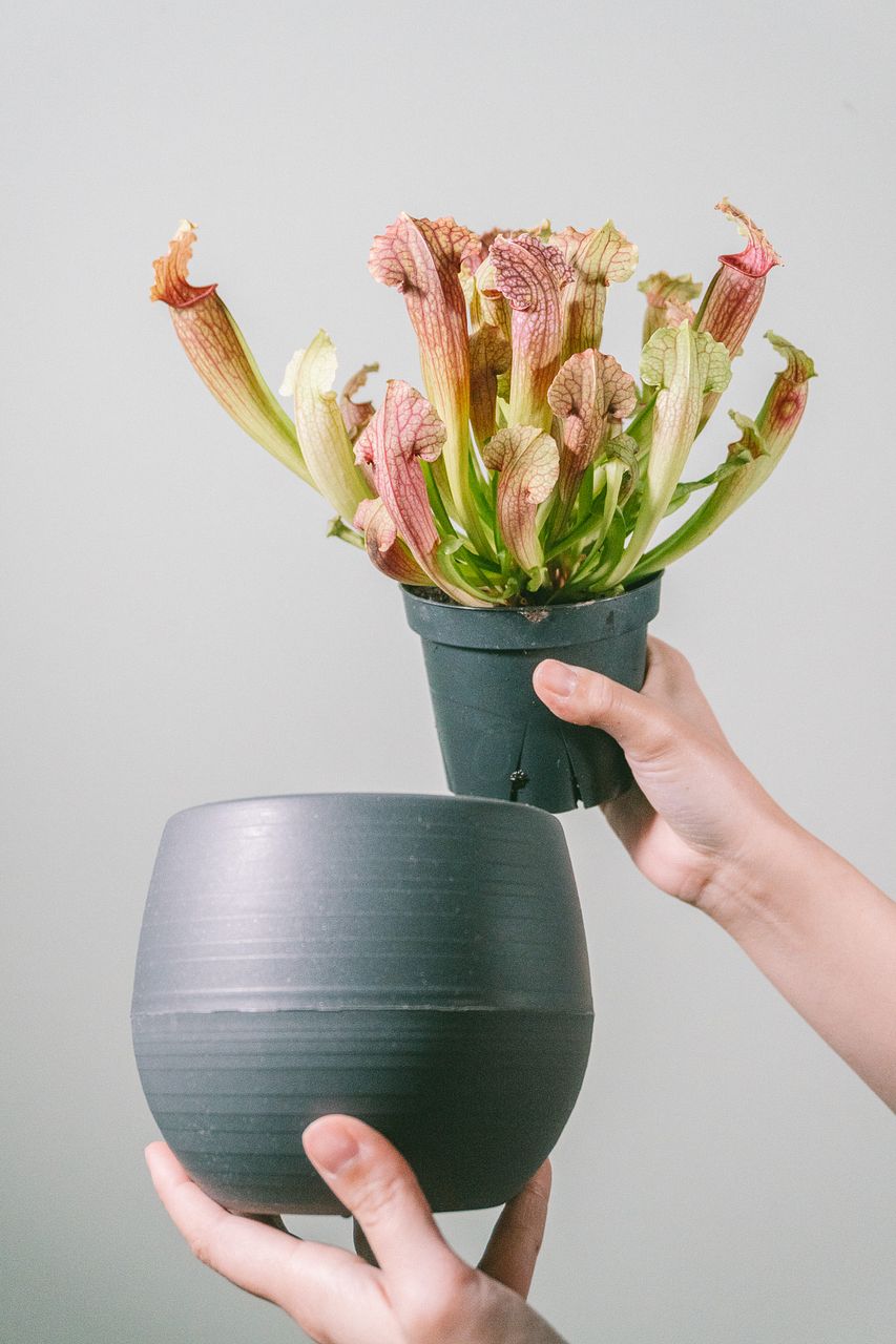 ユニークな見た目が人気の食虫植物サラセニアが、手軽に楽しめる給水ポット仕立てで入荷しました🪴