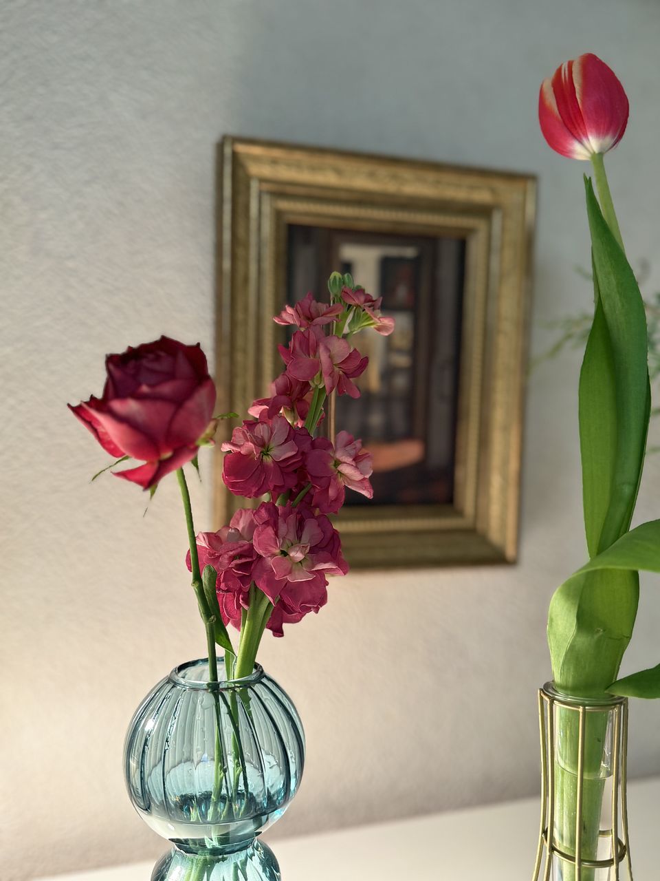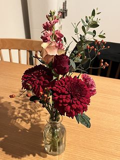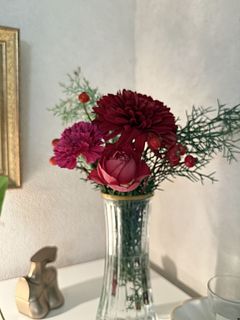 思っていた色味ではなかったけれど、これはこれで良い感じ。一緒に注文した花瓶が思ったより大きかった。けど、サイズを確認しないでポチッとしたので仕方ない😅 あと、とっても良い香りがして癒されました。