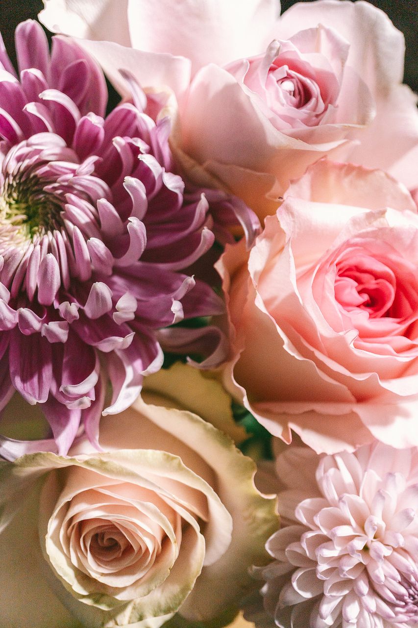 旬のマムとバラを合わせたブーケは、ホワイト〜ピンクのグラデーションが魅力的❄️💞