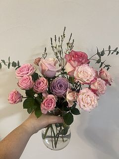 はじめて購入しました。届いて箱を開けると薔薇の良い香りがして、主にピンク色のバラ達が。一本薄い紫の薔薇もあり素敵でした。水に使ってしまう部分の葉っぱを取る作業をする作業も良いなぁと思いましたました。バタバタ忙しい毎日でしたが、花を楽しむホッとする時間ができました。これからも花や葉に触れて花を見てくつろぐ時間を楽しみたいです。Flowerさんありがとう😊