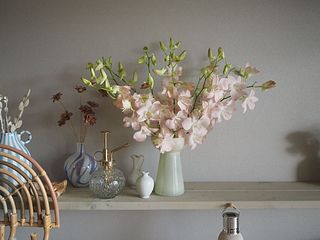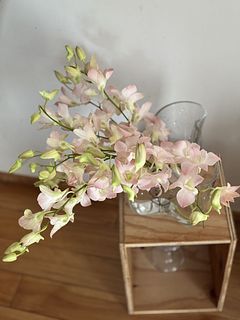 美しいです。隣のソファで本を読んでいると、目線にデンファレがあり、とても幸せな気持ちになります。茎は短めなので花瓶は選ばないといけません。 普段自分では選ばないようなお花も、flowerでは新しい冒険と発見ができて嬉しいです!