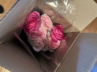 届いた箱を開けた瞬間、思わず幸せな気持ちに。香り立ちの強いダマスクモダンの香りや、ほのかに香るティーの香りなど、バラの香りタイプには大きく7つの分類あるんだとか。お好みの香りに出会えますように。