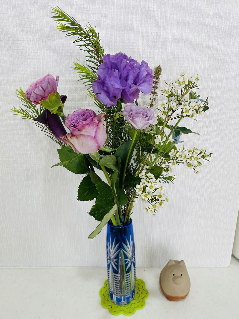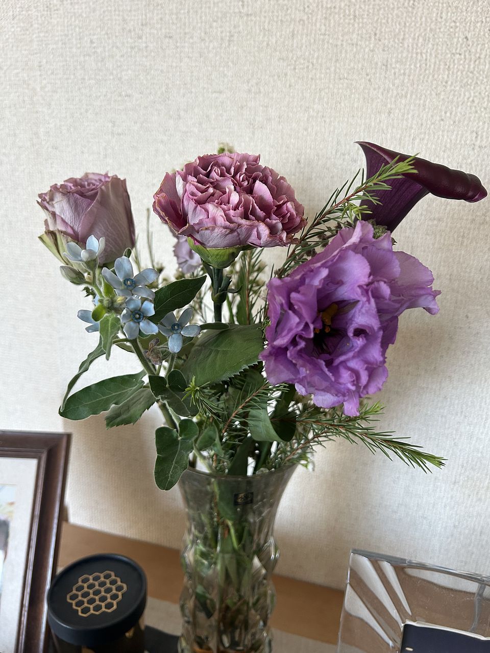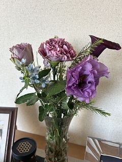 ボリュームはそれほどではありませんでしたが、さまざまなパープルのお花が入っていてまとまった印象です。