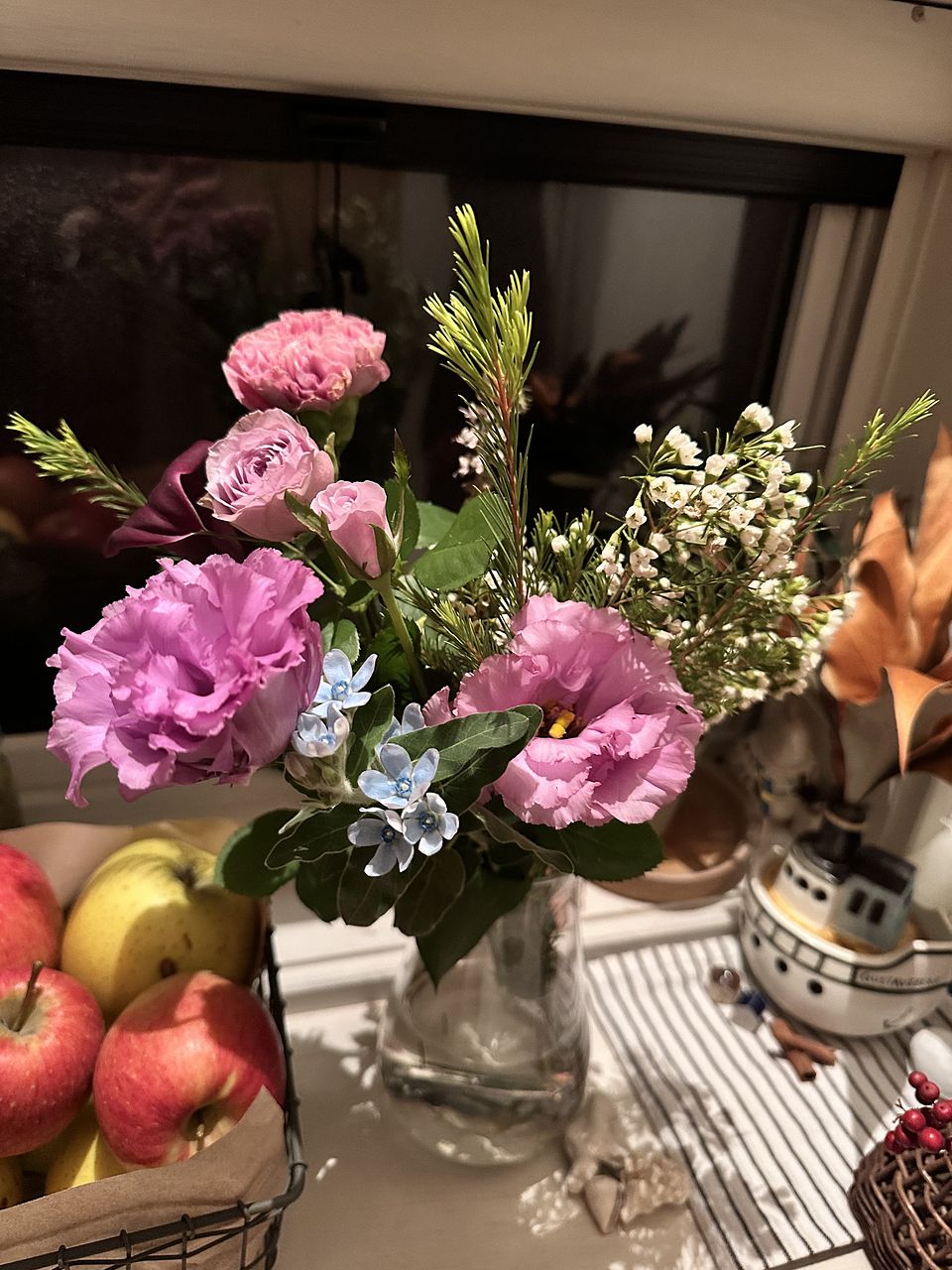 トルコキキョウが萎びていて心配しましたが水揚げすると少し復活してくれました パープルと言うより、ピンク系で、少し残念でした