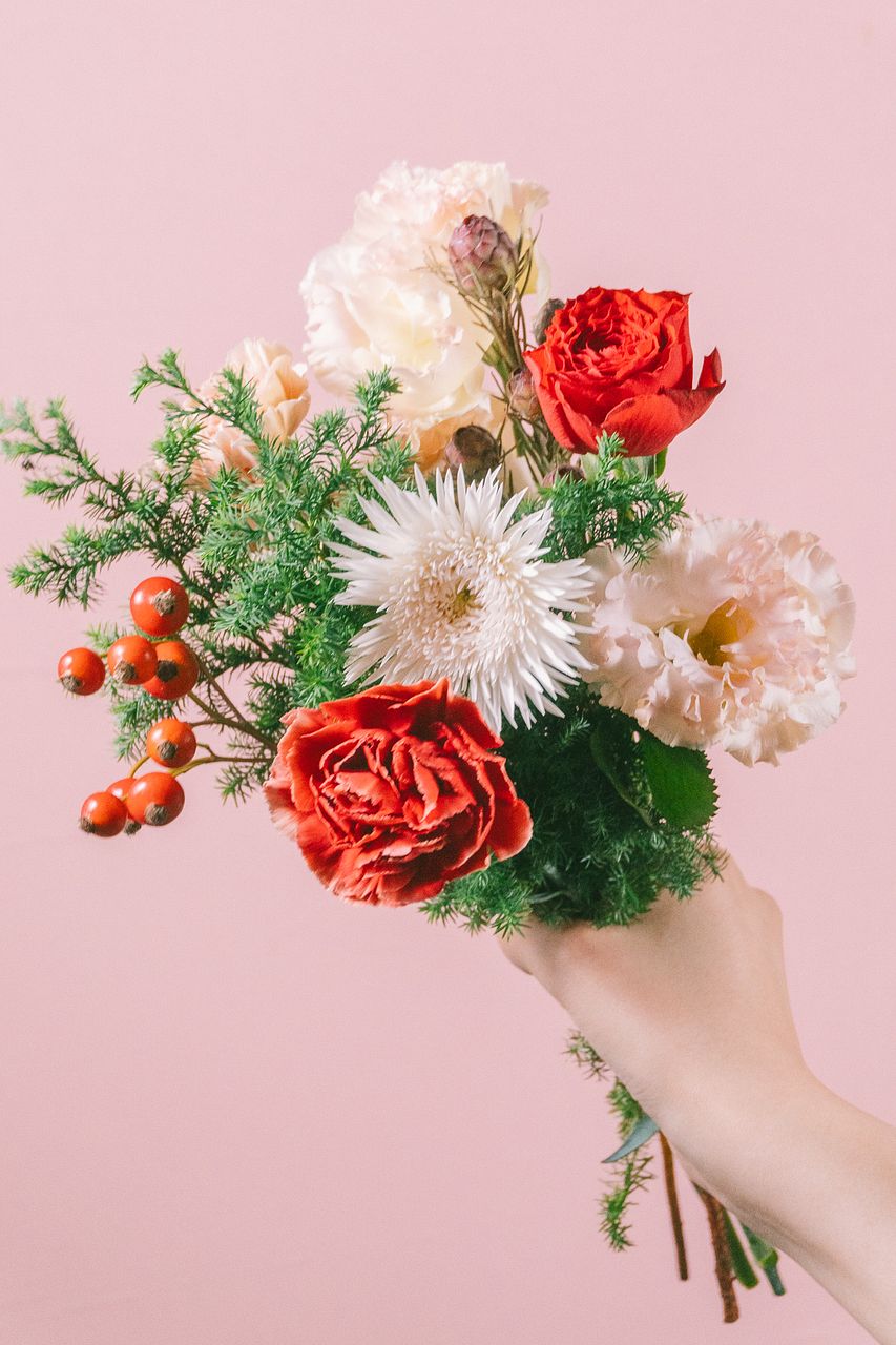 今の時期からも飾りやすい🎅サンタさんカラーのナチュラルなホリデーブーケはいかが?