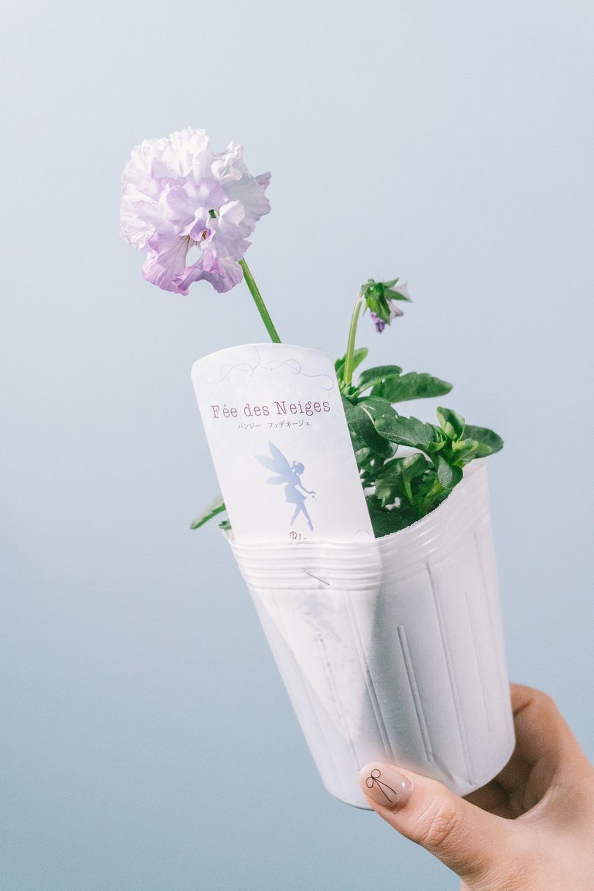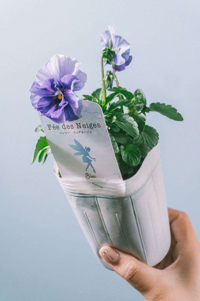 まるで雪解けの朝に咲く花のような、柔らかなブルーと白のグラデーションが美しいパンジー❄️