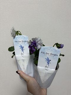 写真通りのふわふわ系パンジーでした。 とってもかわいいです! ブルーって言うかパープル系ですね。 届いた子は写真より結構濃いめのパープルでした。