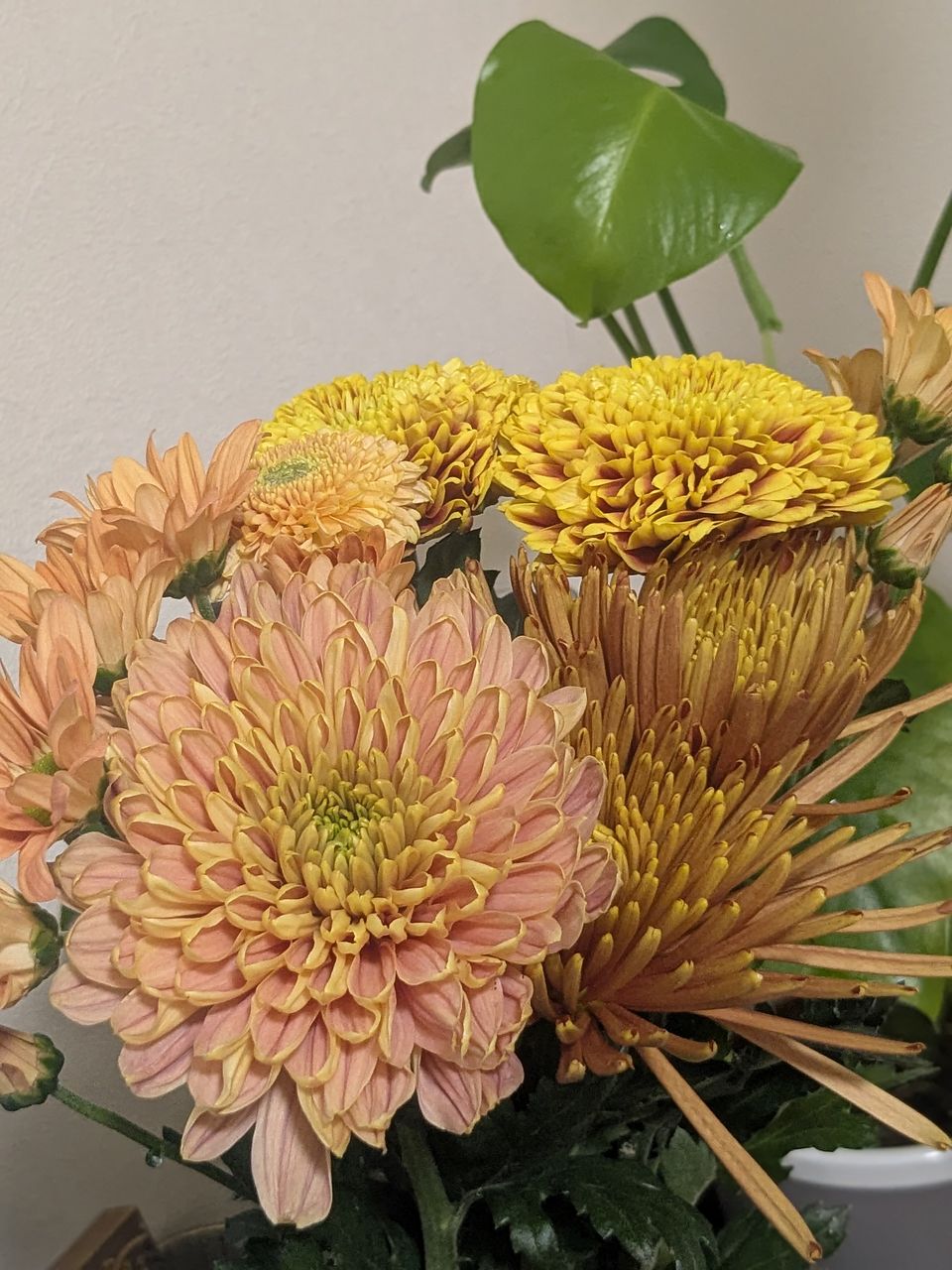 秋に旬を迎えるマム(洋菊)、比較的長く楽しめるのも嬉しいポイント。