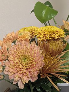 イエロー、オレンジ、ブラウンカラーのマムやスプレーマムをお届けします。