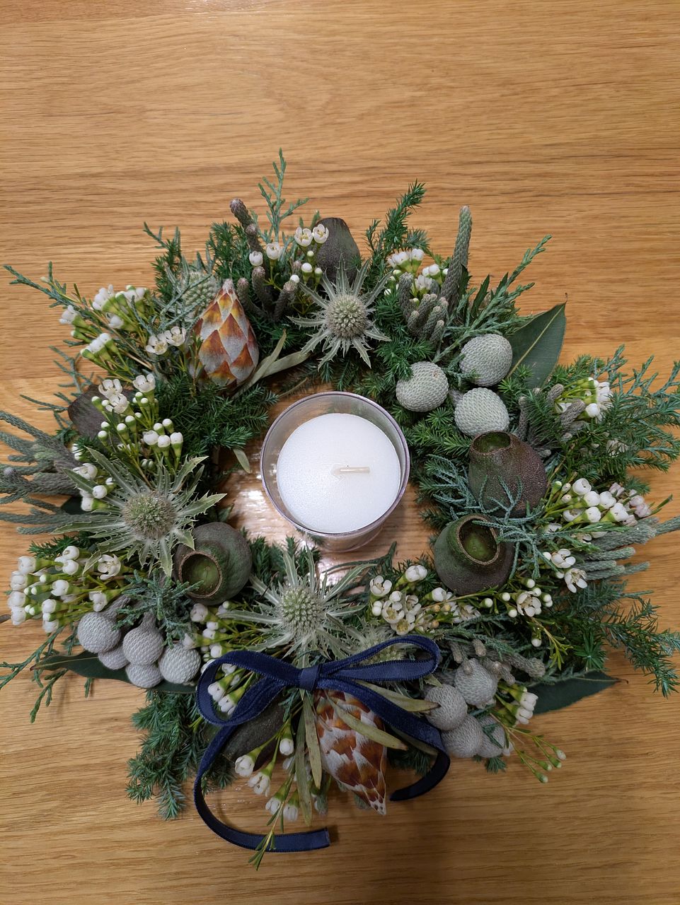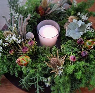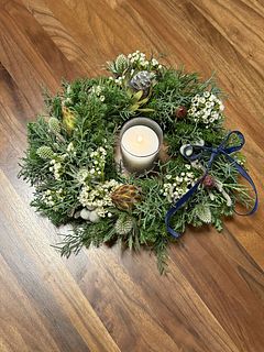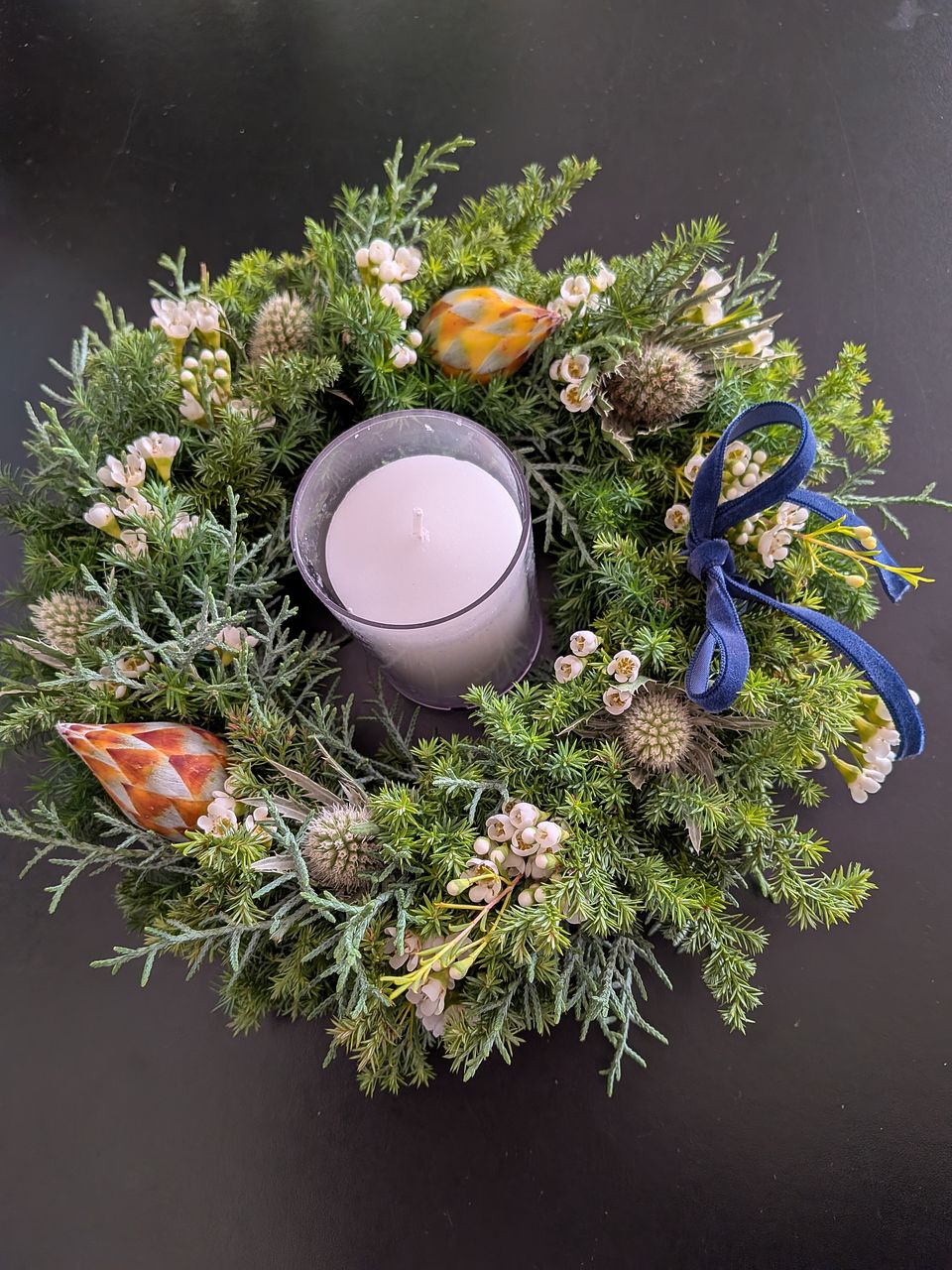 グリーンモリモリ盛り盛りで思い通りのリースができました❣️ 手持ちのキャンドル🕯️もよく合ってムード満点! 癒されます