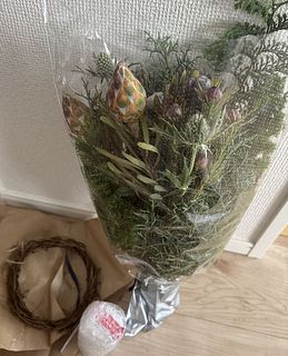 期待以上に花材がたくさん入っていて大満足でした😊 リース作りはちょっと難しかったけれど、グリーンの香りに癒されて楽しみながら作れました。 また違うリースにも挑戦してみたいです!