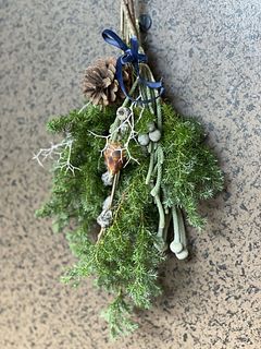材料もたっぷり届き、余ったものとあるもので小さなスワッグも作れました。グリーンのいい香りです。