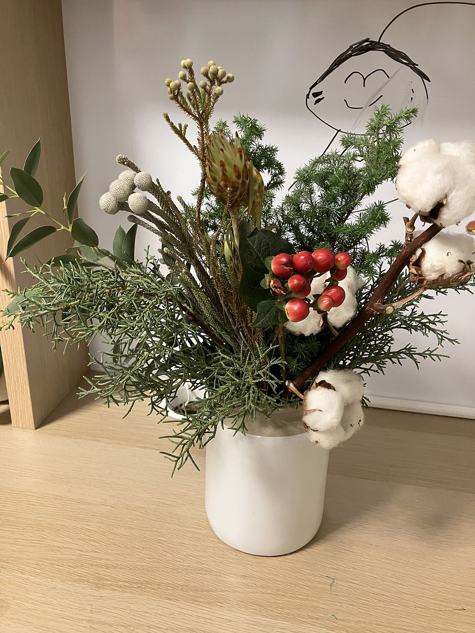 スワッグにもぴったりなブーケはいかが?針葉樹はまるで森の中にいるような香りです。心踊るこの時期だけの限定ブーケで。ぜひお部屋に飾ってみて👀