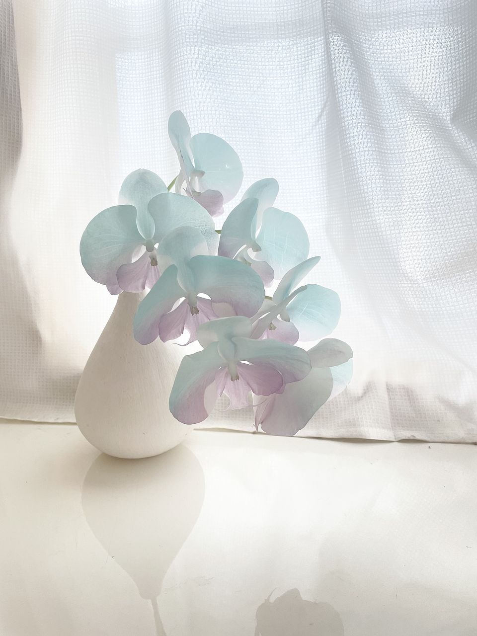 パウダーブルーからラベンダーのグラデーションが幻想的🦄✨かわいい色スプレー染めの大輪ファレノプシス(胡蝶蘭)が入荷しました。