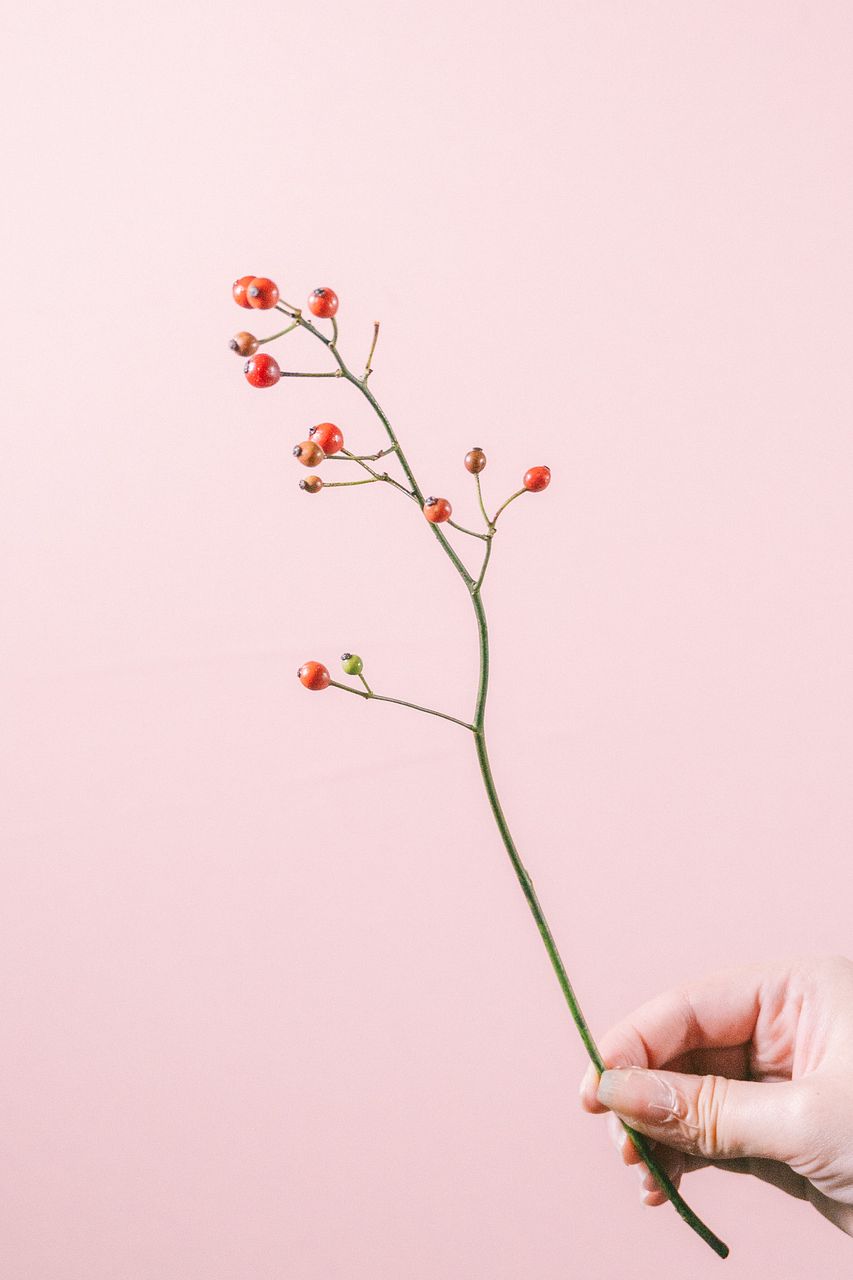 小さくて愛らしい野バラの実だけを束ねて。ばさっとラフに飾るのがおすすめ。