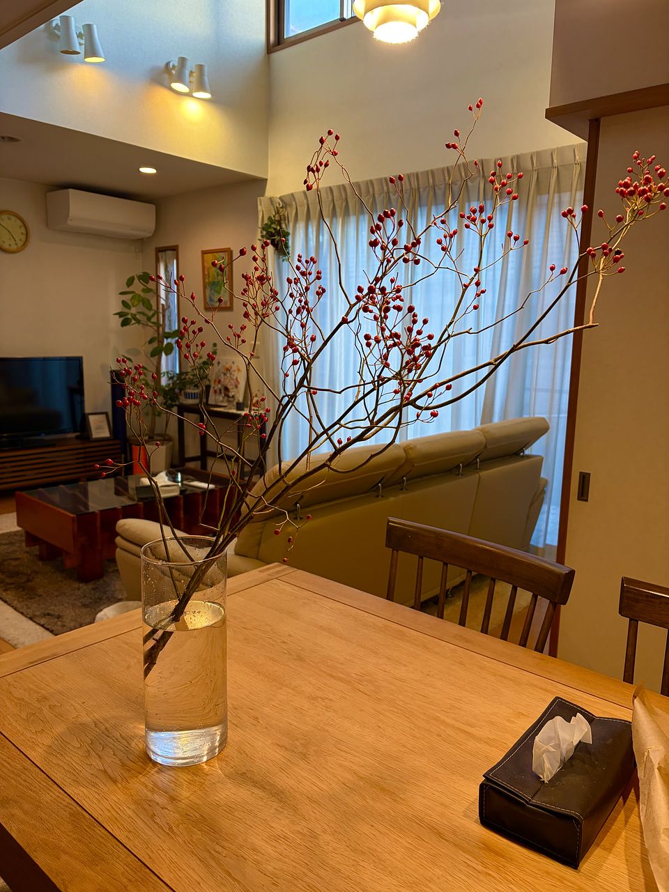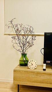 初めて枝ものを買いました。枝もの用のフラワーベース(市販のSサイズ)も買って玄関に飾っています。実の付きはまあまあかな? 開けた時に、ふわっといい香りがしました✨ 子どもが木の実大好きなので喜びそうです💡