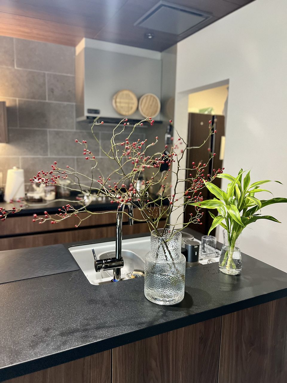 10日経った今も実も落ちることなく元気です。 活け方や花器によっていろんな雰囲気を出せるかも。