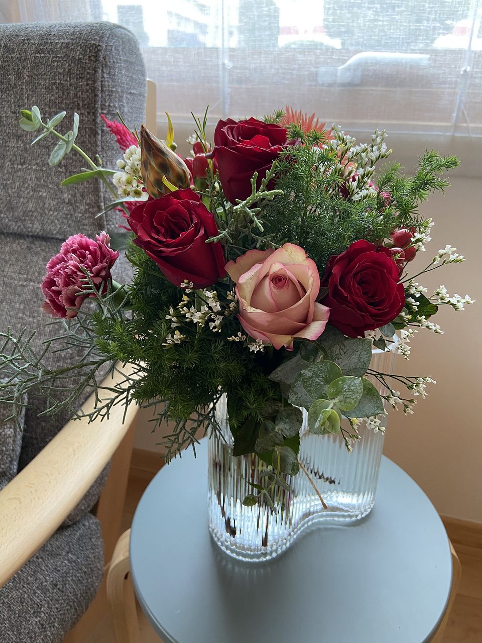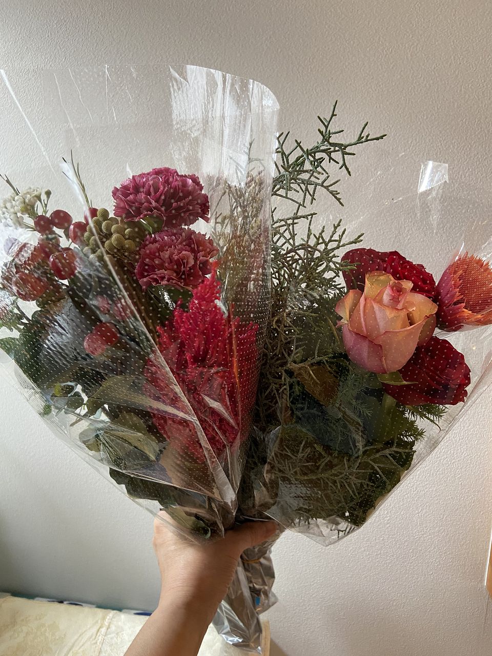 届いたお花、ボリュームがありました! 素敵なスパイラルブーケができましたと思います❣️