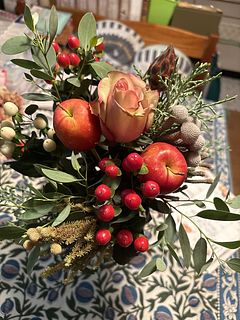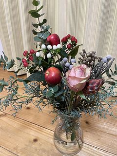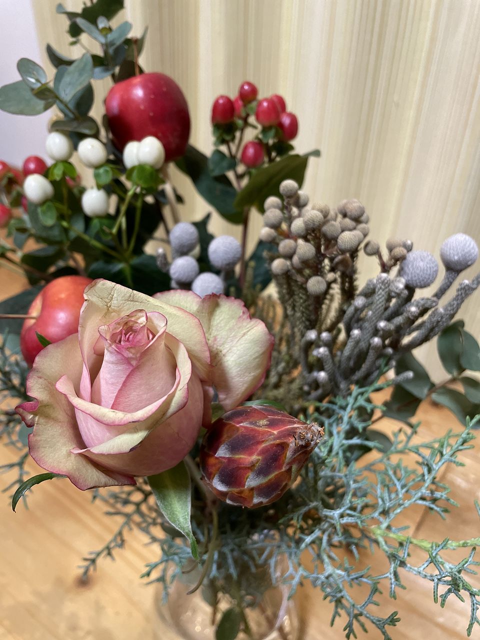 開けた途端ユーカリの爽やかな香りがしっかりしました! 緑と赤と白のバランスがよく、ホリデーシーズンにも似合う華やかさがあります。