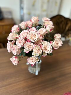 とても良い状態で届きました。痛みもなく、ボリュームも予想以上で大満足です♡ お花屋さんでこの数の薔薇を買ったら倍以上のお値段ではないかしら? まずはお部屋に飾りましたが、本数あるので少しカットしてトイレや洗面所に飾ったり、当分楽しめそうでうれしいです♡